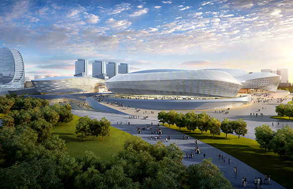 其中,滿足NBA標準、1.8萬座的綜合體育館,可承接頂級籃球、冰球、羽毛球、乒乓球、手球、體操等室內賽事,也能用于舉辦商業演出、大型論壇活動;滿足FIFA標準、6萬座的專業足球場,今后可承接國際頂級足球賽事,還能用于舉辦國際級巨星商業演出、大型歌舞晚會、頒獎典禮。